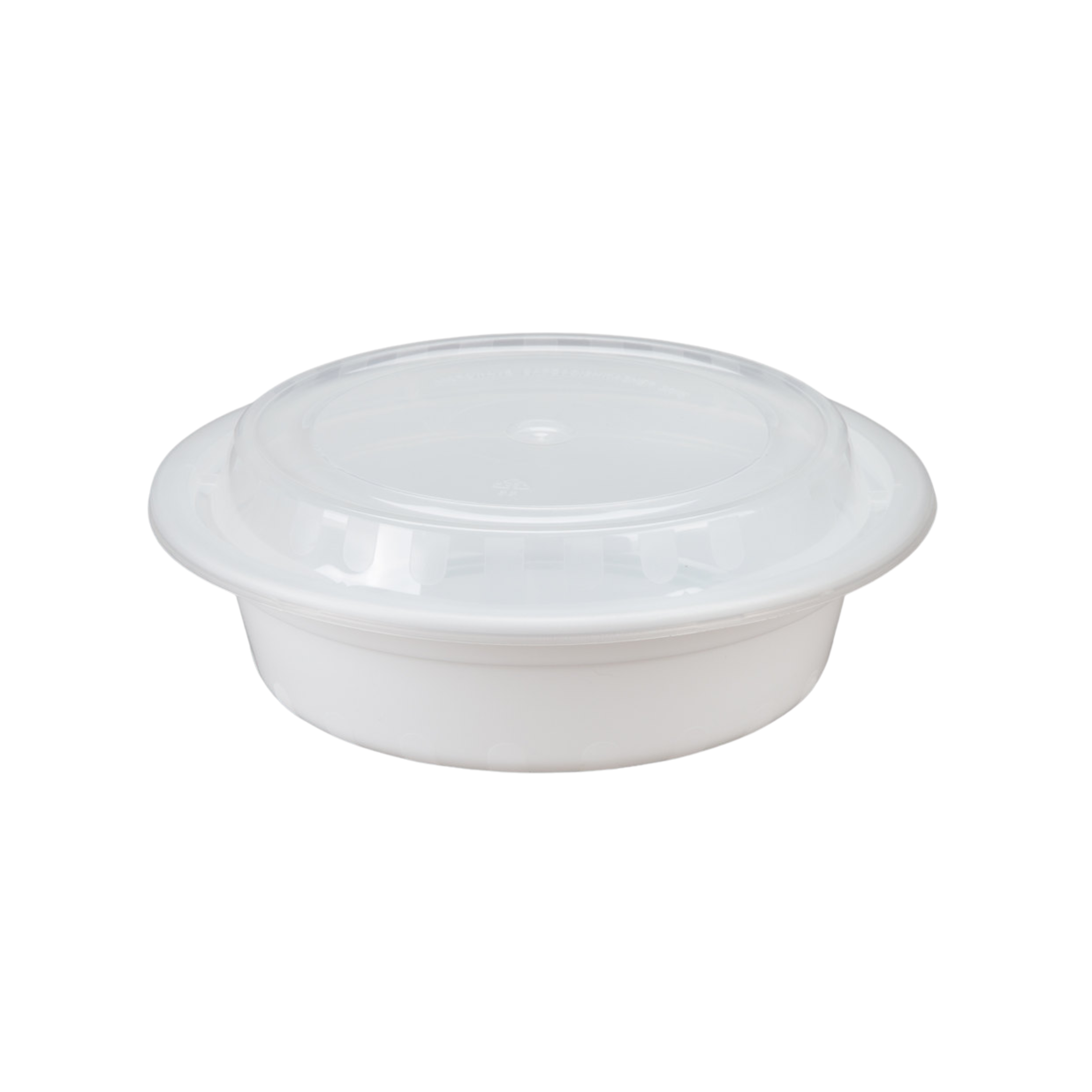 16 oz White Round Take-Out Microwaveable Container with Clear Lid