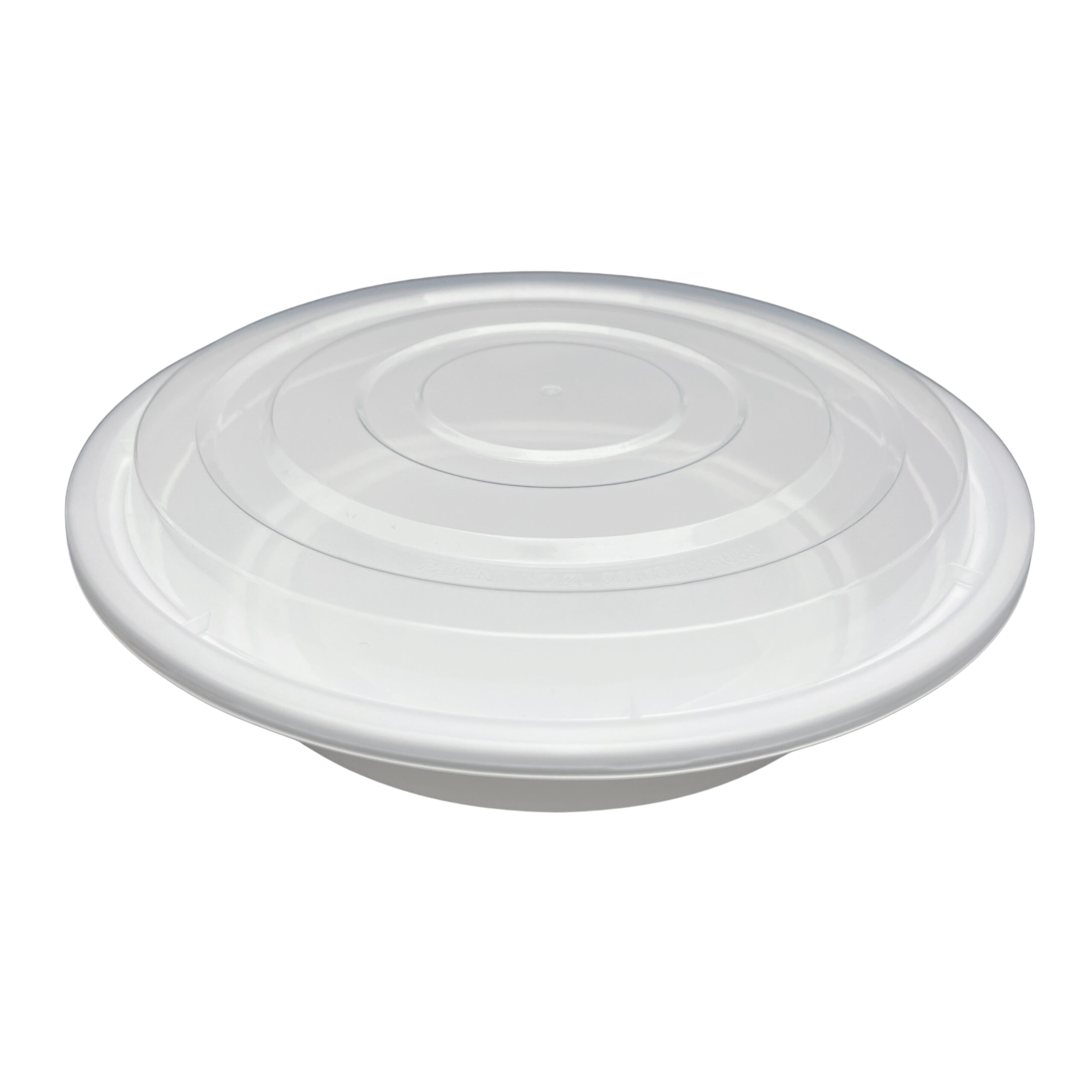 48 oz White Round Take-Out Microwaveable Container with Clear Lid
