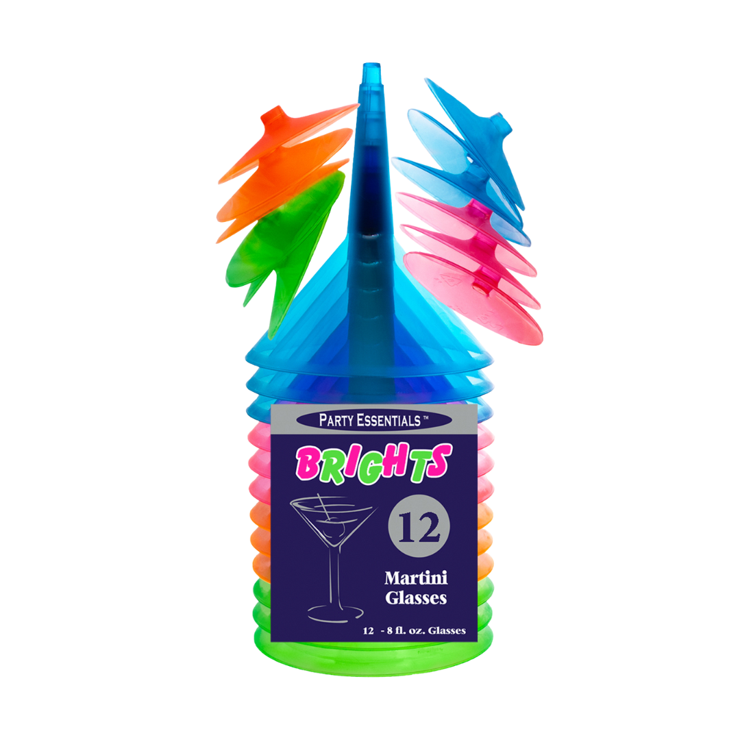 8oz Assorted Neon Martini Glasses - 12pcs/pk