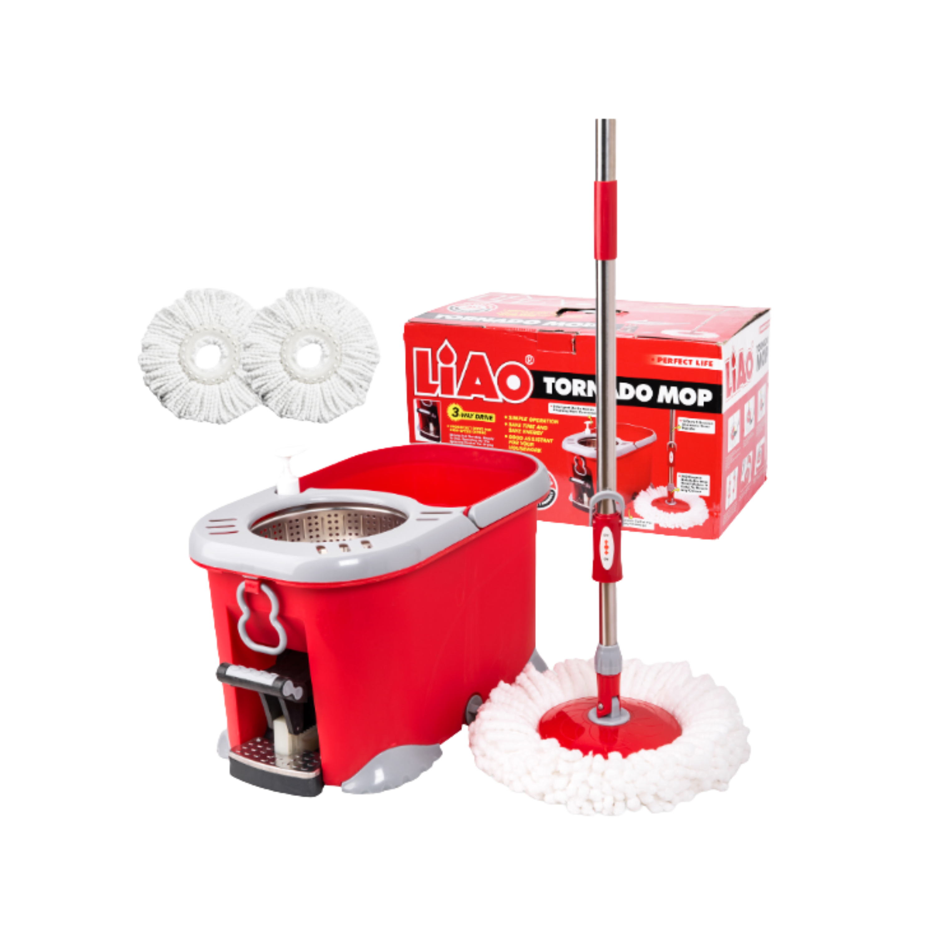 3 Way Drive Tornado Mop (Bucket, Handle and 2 Microfiber Mop Refills)